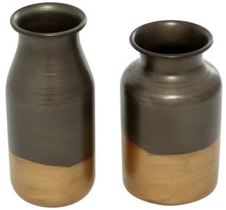 Embrace artistic expression with a style that highlights bold designs with sleek lines, neutral elements, and a minimalist aesthetic. Black decorative vase set is crafted from iron sheets and rods for durability and elegance. Geometric home decor vase set features a matte black color finish with gold wire accents.Read More