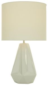 This polished white accent lamp for table features a unique hexagonal shape, round shade, and faceted geometric patterns