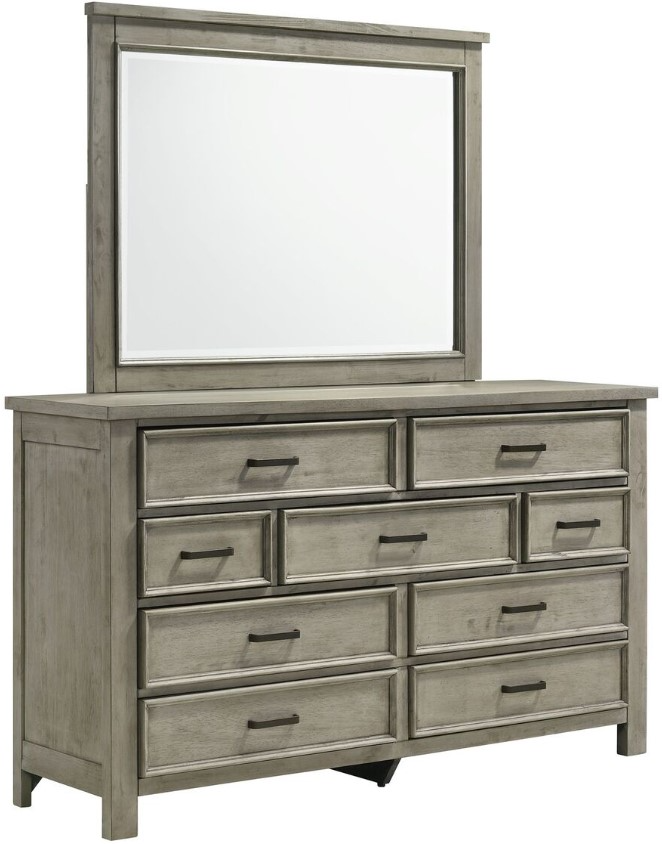 Keep your bedroom organized with the Sullivan drift gray dresser. Featuring a soft gray finish and multiple spacious drawers, it combines modern style with practical storage—perfect for clothes, linens, and essentials while adding a calming touch to your space.