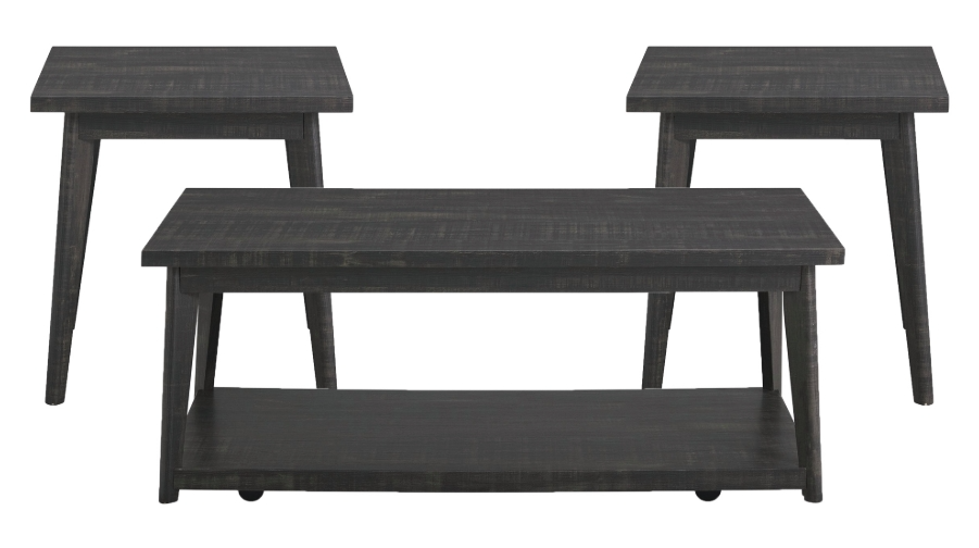 The Libby showcases sleek profiling and mid- century tapered legs. This set includes one coffee table and two end tables. Crafted of rubberwood and manufactured woods. The open shelf design on the coffee table is perfect for your favorite decor pieces, magazines, remotes, blankets, and so on.Read More
