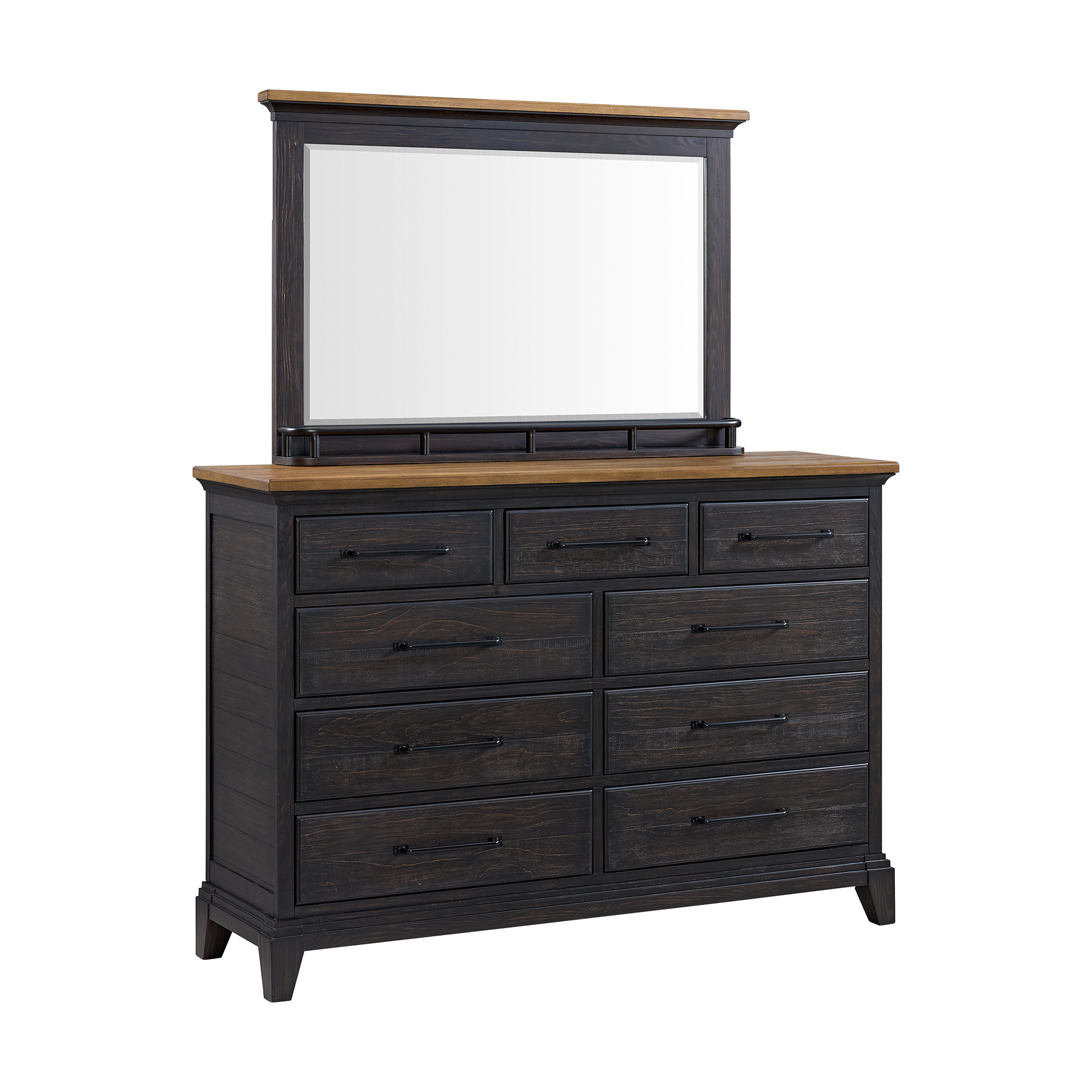 The Montrose Dresser in Espresso and Brown effortlessly blends timeless design elements with modern practicality. The aesthetic dual-toned finish adds visual interest, while the high-quality pine veneer enhances durability. Felt-lined top-row drawers provide extra protection for your delicate items, and a compartmentalized jewelry tray allows easy organization. To further this piece's appeal, drawer boxes feature skillful dovetail construction and smooth ball-bearing glides. For a refined and practical addition to your bedroom, the Montrose Dresser delivers in both quality and style.Read More