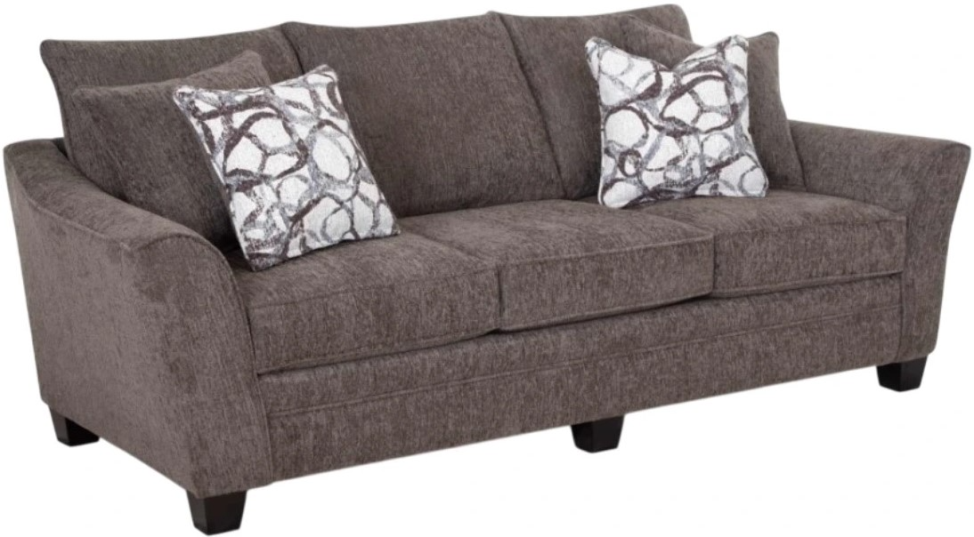 Experience a touch of “flare” with the meticulously crafted 910 Tiffani Collection. This thoughtfully designed collection includes a sofa, loveseat, chair and half and matching ottoman. All pieces are upholstered in a soft, durable gray fabric that is contrasted with coordinating accent pillows.Read More