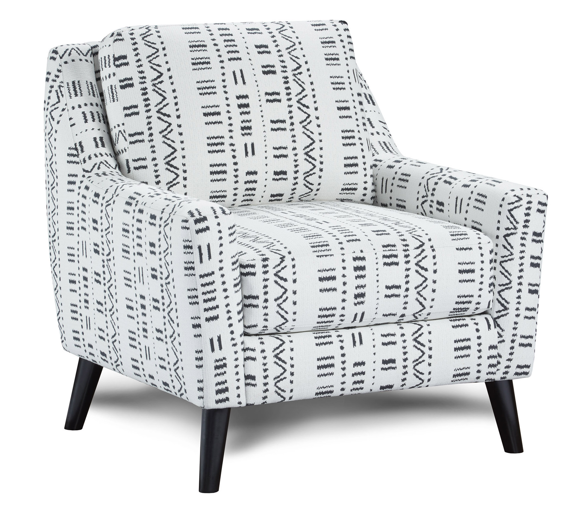 The 290 Accent Chair is highlighted by a loose pillow back and loose seat cushion occasional chair with a front arms that slope down to the coffee finished conical, splayed wooden legs.Read More