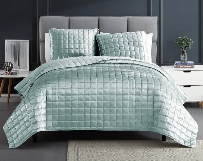 Add this to your bedroom for an instant update. This beautiful set includes a coverlet and two shams, all in a lovely seafoam hue. It's perfect for those who like a little bit of color and pattern in their space.Read More