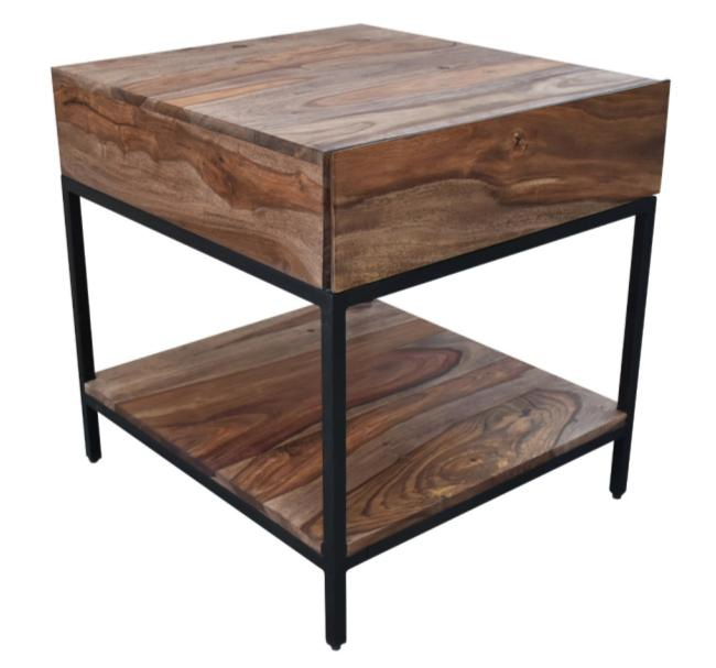 This rustic-style end table features a solid Sheesham wood top with a Brownstone Nut Brown finish and a black powder-coated iron base.Read More