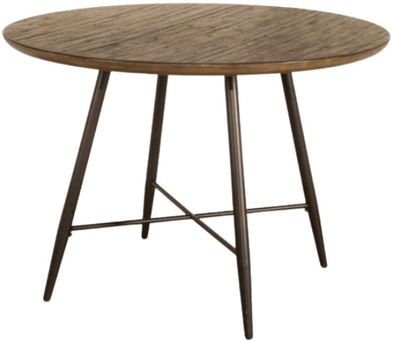 This mid-century modern round dining table packs maximum style into minimum space. This piece speaks of the virtues of simple beauty in hushed tones. One rounded piece sits atop four elegantly tapered, flared legs made of heavy gauge metal and finished in a dark brown.Read More