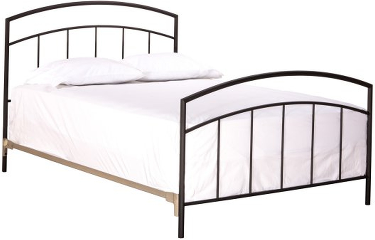 With the soft arch of the headboard and footboard and simplicity of the vertical lines on both, this bed can fit in any room easily. Rounded tubular steel adds a softer look and the textured black finish ensures that it will match any décor and be a pleasant addition to your room. Mattress and boxspring required.