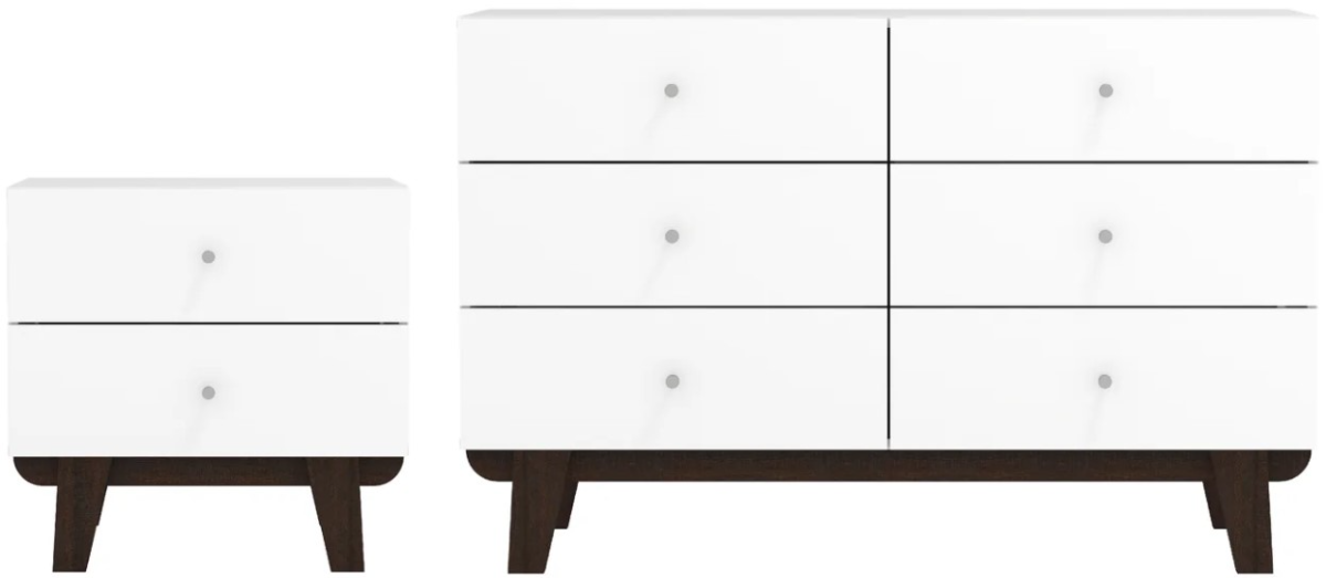 Midcentury modern wood 2-drawer nightstand, 6-drawer dresser set in white