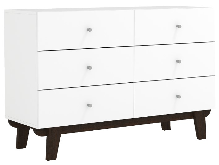 The modern silver knobs dress it up just right, while the angled weathered walnut wood legs accessorize perfectly. The matte white veneer coat stays bright whether you place décor, a mirror, or even clean(ish) laundry on top. Six drawers with smooth metal glides give you easy access for days you can’t find a thing to wear. Assembly required.