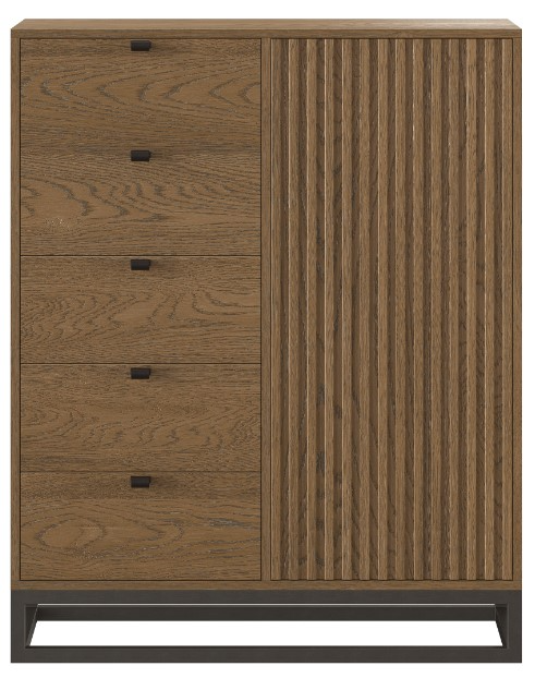 Five-drawer, one-door gentleman's chest displays playful touches while exemplifying the best of industrial modern design