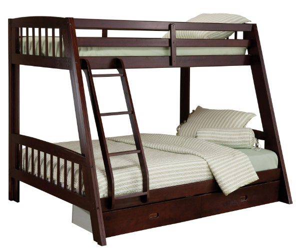 The Hillsdale Furniture Rockdale twin over full bunk bed features a sturdy wood construction complimented by an espresso finish. The twin upper bunk bed sits perfectly over the full size lower bunk bed and is easily accessed by the sturdy wood ladder that is fixed on the right side of the bed.Read More