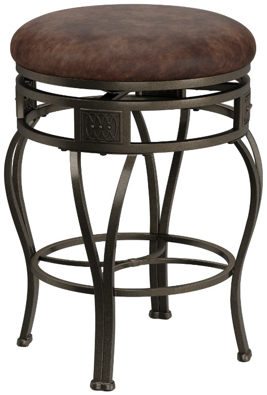 The Hillsdale Furniture Montello Backless Swivel Counter Height Stool radiates elegance and grace. Sweeping cabriole legs in old steel metal with inverted arch supports impart a sense of sophisticated dignity. An exquisite interlocking oval design is showcased in the insets at the front legs' capitals.Read More