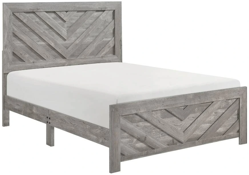 Modern lines and rustic styling are paired to create the look of the Corbin Collection. The 3D printed paper veneer’s texture is highlighted by a gray finish for a realistic wood look. A bold V-pattern defines the face of the California King panel headboard and footboard.Read More