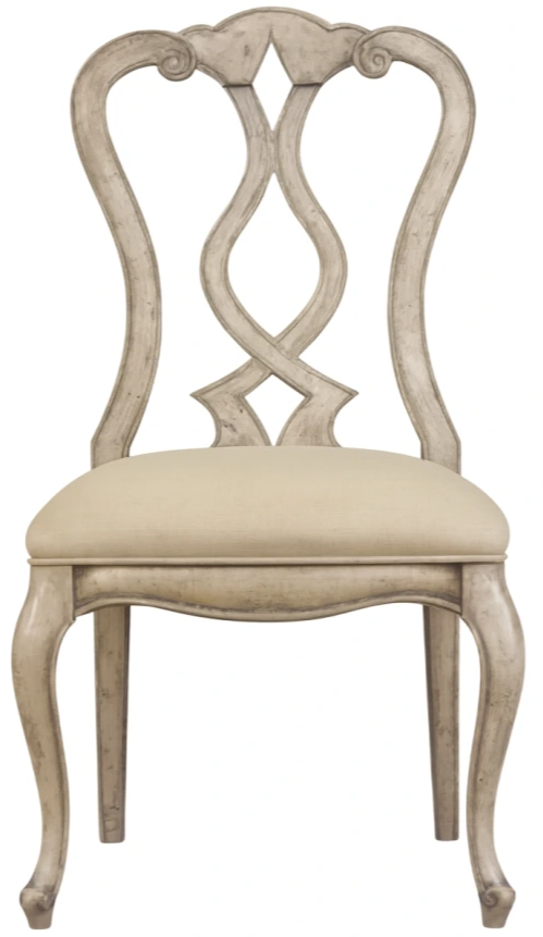 Relax in comfortable elegance with the Chatelet splatback side chair that will help you create a luxurious but laid-back dining experience. The upholstered seat is covered in a natural-colored linen blend and gracefully shaped back is finished in Paris vintage, an aged white.Read More