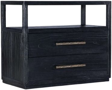 With the aura of a rustic mountain cottage, the Linville Falls two-drawer nightstand has an airy feel with an open area at the top and two self-closing drawers. Crafted of pine veneers, the nightstand is finished in shadow, a charred black finish achieved through shou sugi ban.Read More