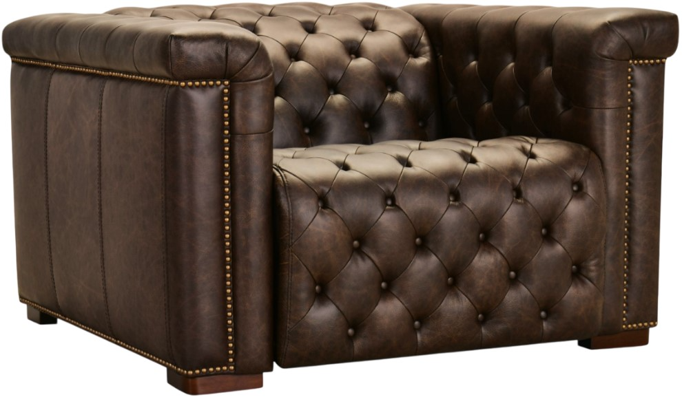 Experience unmatched comfort with the Savion Deux power recliner, featuring a power headrest and power recline functionality. Upholstered in West Saddlewood top grain leather, it boasts classic chesterfield tufting and copper-toned accent nail trim. The dark wood finish complements the luxurious leather, delivering a sophisticated, timeless design.Read More