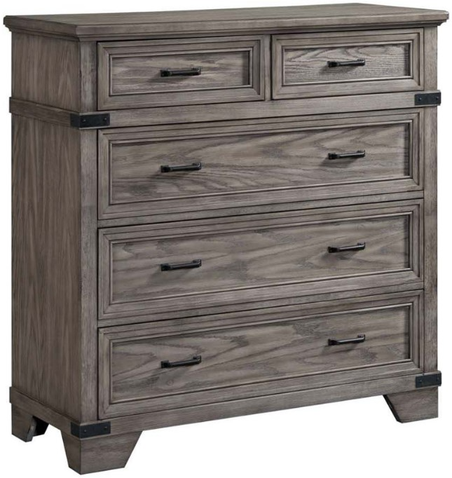 The Forge bedroom collection features oak veneer and select hardwood constructions in a wire-brushed steel gray finish. With detailed metal accents and hefty hardware, this trendy gray bedroom set will add a diverse style to any bedroom.Read More
