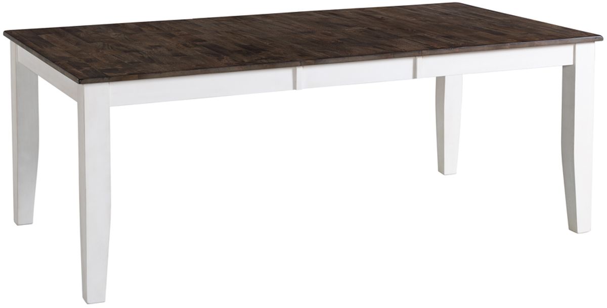Table is constructed from solid mango wood and select hardwoods. Has durable lacquer finish. Two toned Gray and White finish. Convenient butterfly leaf.