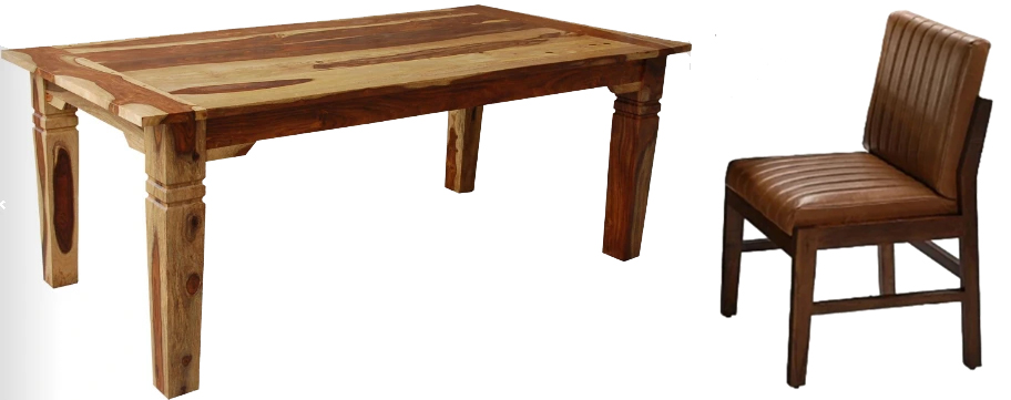 The Tahoe group is constructed of sheesham timber in a water-resistant lacquer sealed natural finish. This table features a planked top with perpendicular end boards, a notched apron and stout double notched legs.Read More