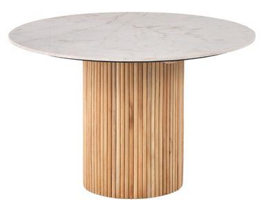 Jaipur Karlen dining set includes round pedestal table and 4 upholstered chairs.Read More