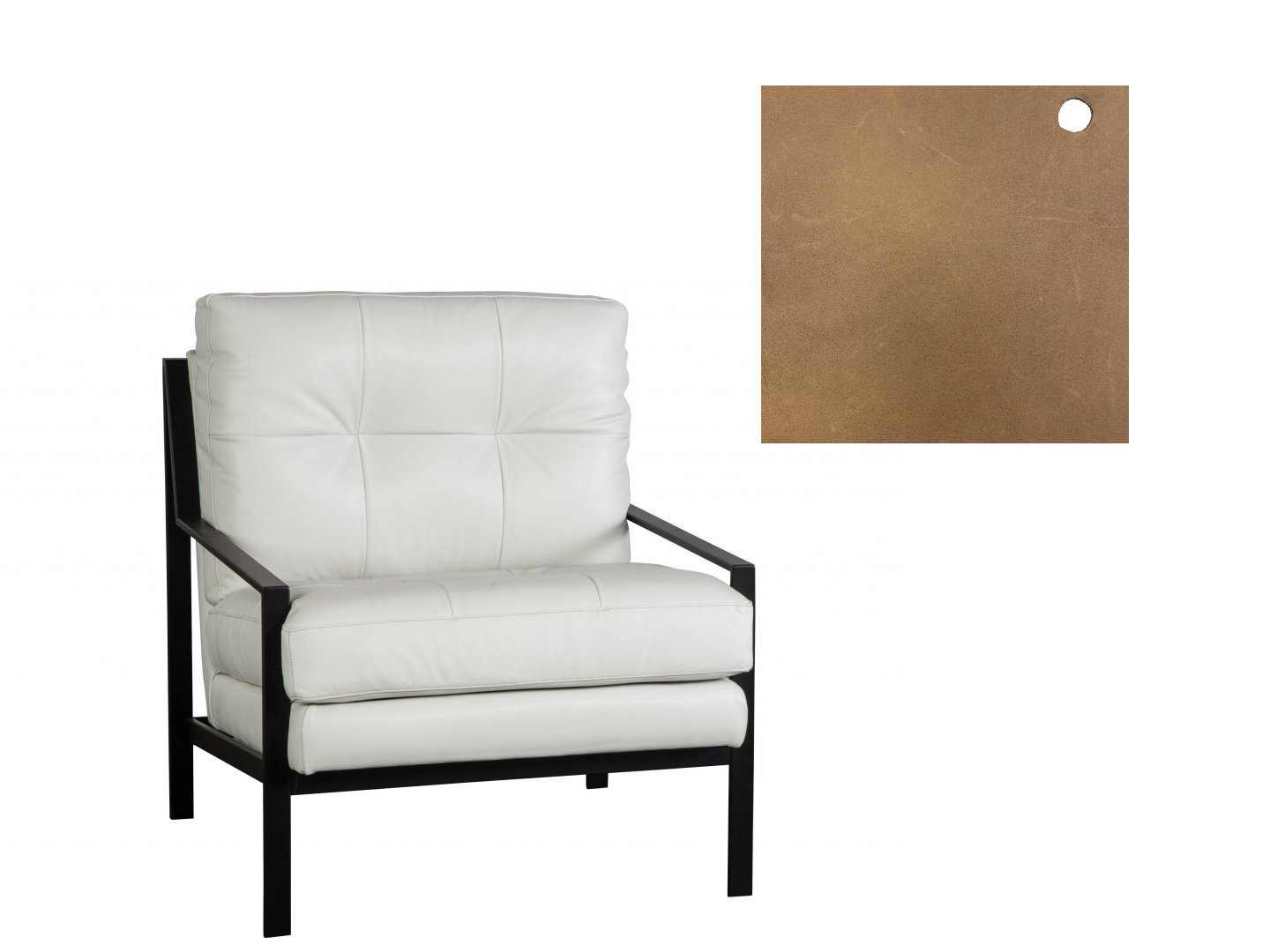 The Mansfield is a standout in contemporary design with its button-tufted cushions and stylish metal frame in a high-end leather upholstery.