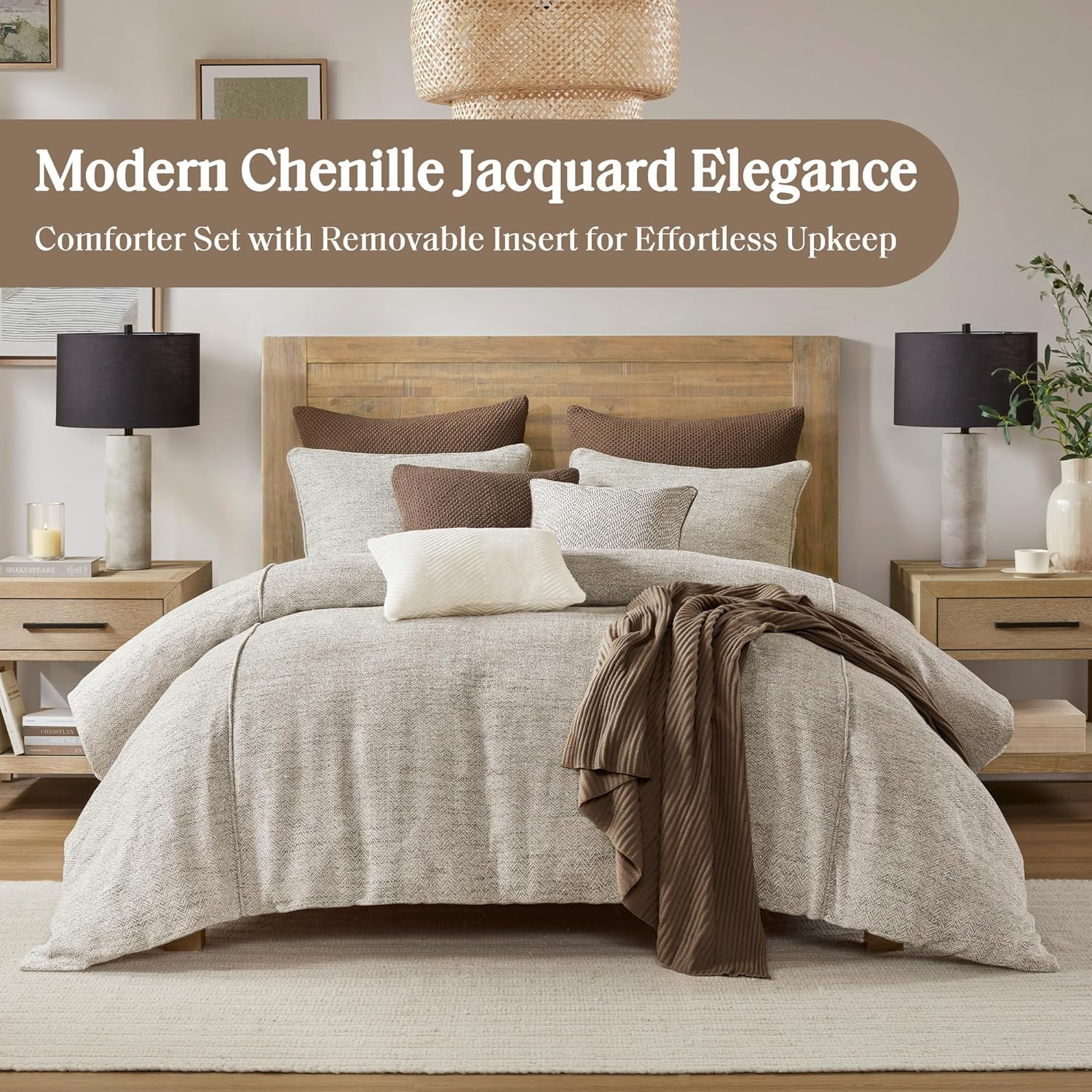 Transform your bedroom into a luxurious retreat with the Madison Park Signature 9 Piece Chapman Luxury Comforter Set. This king comforter set, crafted from premium polyester chenille with lurex jacquard, includes a comforter, standard shams, euro shams, and decorative pillows in a neutral ivory hue. The intricate detailing and filled piping add a touch of elegance and durability, while the removable comforter and easy-care materials ensure hassle-free maintenance. Elevate your bedroom decor with this exquisite and comfortable bedding ensemble.Read More