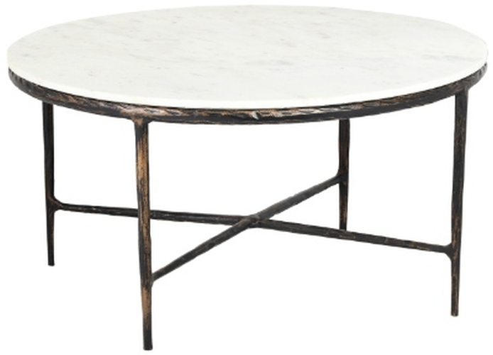 LR Home Bronze/White Coffee Table features round table top, metal base, and part of the white/bronze color family.Read More