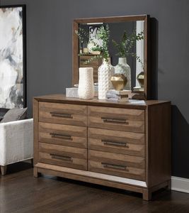 6 drawer dresser with black powder coated handle pulls and beveled frame mirror.Read More