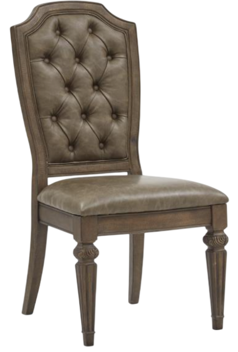 Grand yet casual, luxurious yet laid-back, Durango is an Old World-inspired traditional dining room collection that imparts a fresh allure to classic design. Reminiscent of garden gates, a recurring scroll work design element is featured throughout the collection. A beautiful antique brass finish adores the classic hardware, metal scroll work, the metal stretcher with decorative rosettes on the trestle dining table. Crafted of Pine Solids with a rich and warm Willadeene Brown finish, timeless and gracious style elements include a shaped foot, fluted pilasters, intricate carvings, and dramatic arch shape as featured here on the buffet with hutch. This stunning dining case piece offers appeal storage with 3 felt lined top drawers, 1 adjustable wood self behind each of the four buffet doors and the mirrored backed hutch features 2 wood framed glass shelves with plate groves behind the three wood-framed glass front doors. The Durango hutch also features a convenient 3-way LED touch lighting system to showcase family heirlooms or china. The stately trestle table with a bottom metal stretcher and decorative rosettes features two self-storing butterfly leaves which allow the table to extend from the standard 81 inches to an impressive 113 inches - making it perfect for casual weeknight dinners to large family gathers. Beautifully scaled host chairs in a classic upholstered wing style are accented with decorative metal handles. Metal caps on front legs elevate the look of all three chair styles.