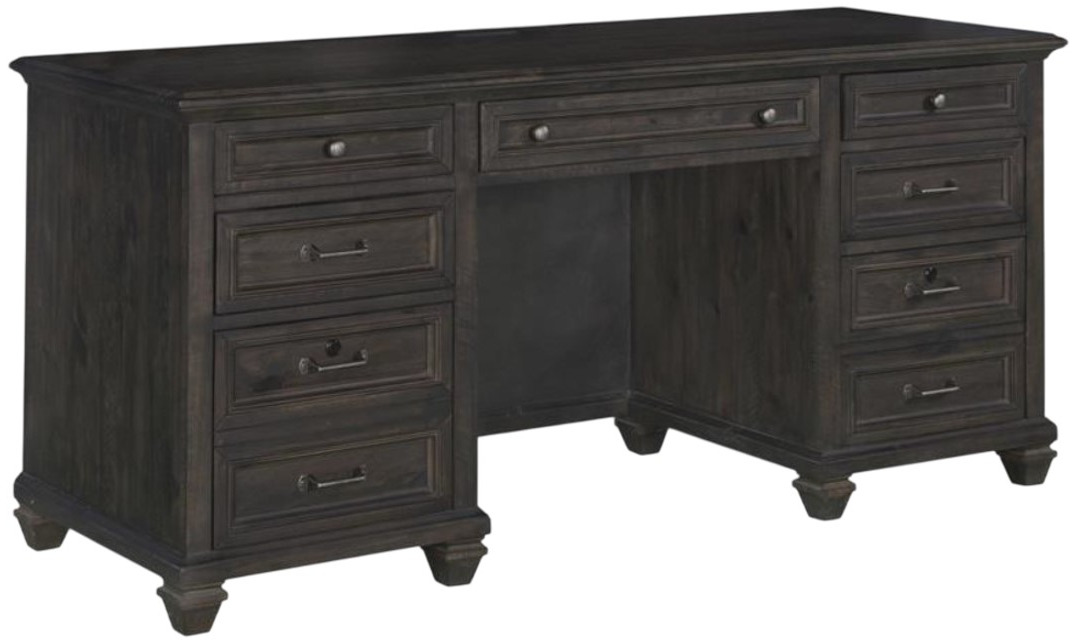 A rustic European vibe present in the weathered charcoal finish and Continental inspired details adds appeal and interest to the Sutton Place home office. Felt lined top drawers, side mount ball bearing guides, English and French dovetailed drawer construction, and the highest quality construction standard to Magnussen Home.Read More