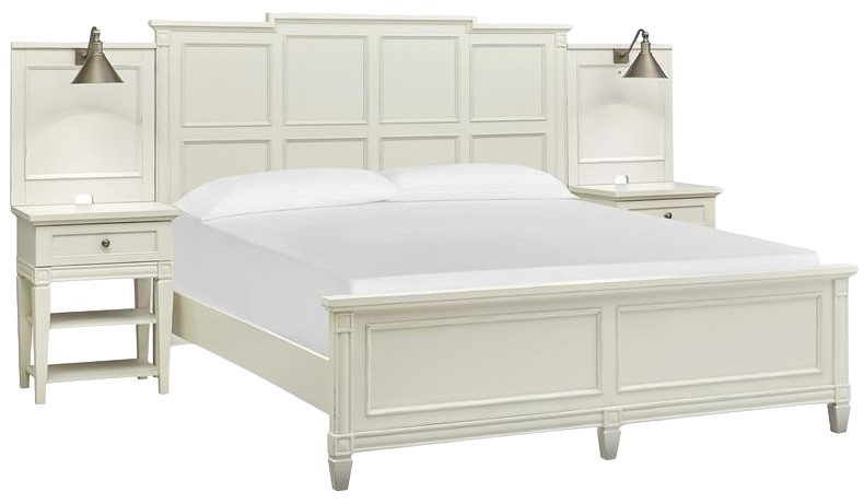Crafted from birch veneers and hardwood solids with a subtle gray wash over the creamy finish, Willowbrook is at home in settings from cottage to coastal, from traditional to soft modern. The stunning panel bed has a storage footboard option with two drawers and is also available with a wood-framed upholstered headboard. Two nightstand options are offered including a two-drawer nightstand and a one-drawer nightstand with two shelves. The functional door chest has a sliding wood door with wood shelves behind, five left drawers with a felt-lined top drawer and one bottom drawer to maximize storage. From beaches to the countryside, Willowbrook is a relaxing destination for the end of each day’s journey.