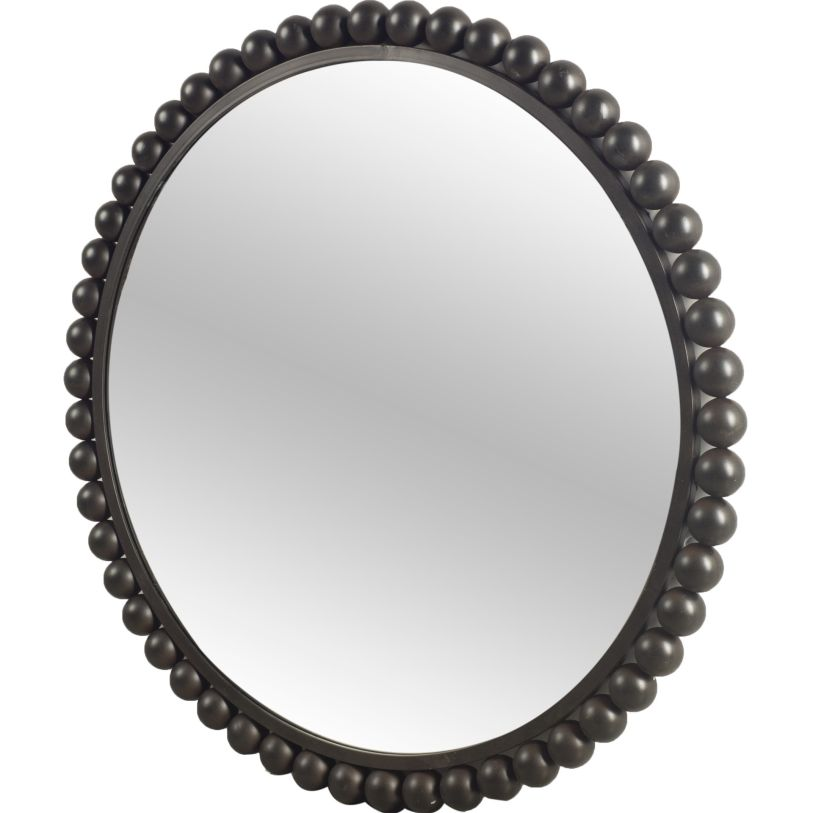 The 43" Orbit circular wall mirror finished in a matte-black tone with amazing round bead details. The Orbit looks absolutely gorgeous with a ring of metal balls that seem to be orbiting the mirror.Read More