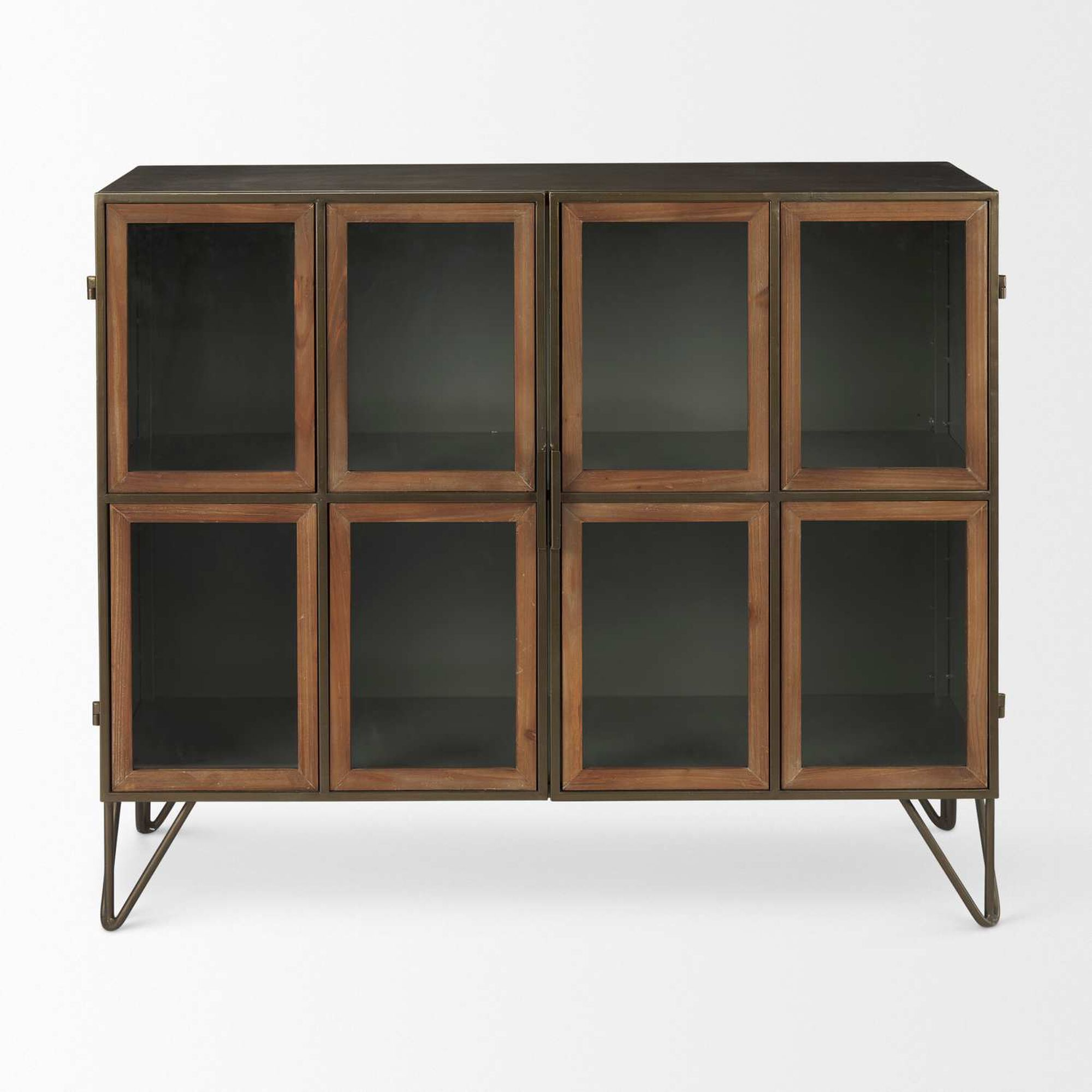 Pandora Brass and Red Wood Two-Door Accent Cabinet