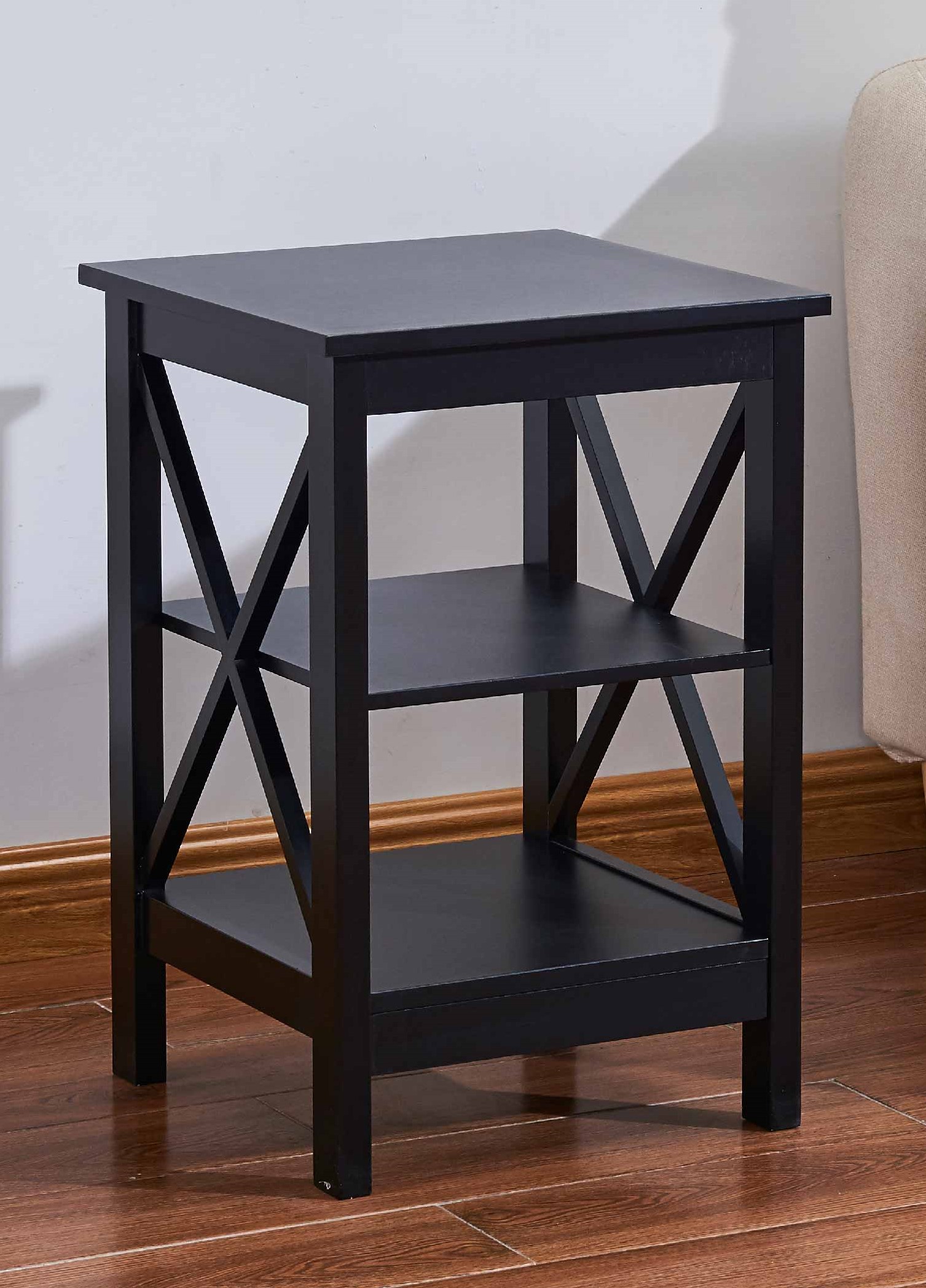 This end table from Milton Greens Stars feature a X-side panel with bottom shelves storage in black finish.Read More