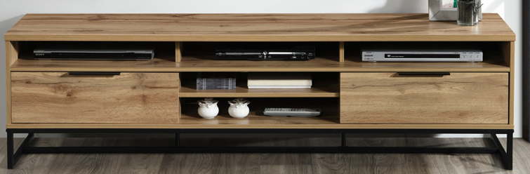 This TV stand from Milton Green Stars features a 61" length faux wood tv stand with 1x2-tier, 3 shelves, 2 drawers.Read More