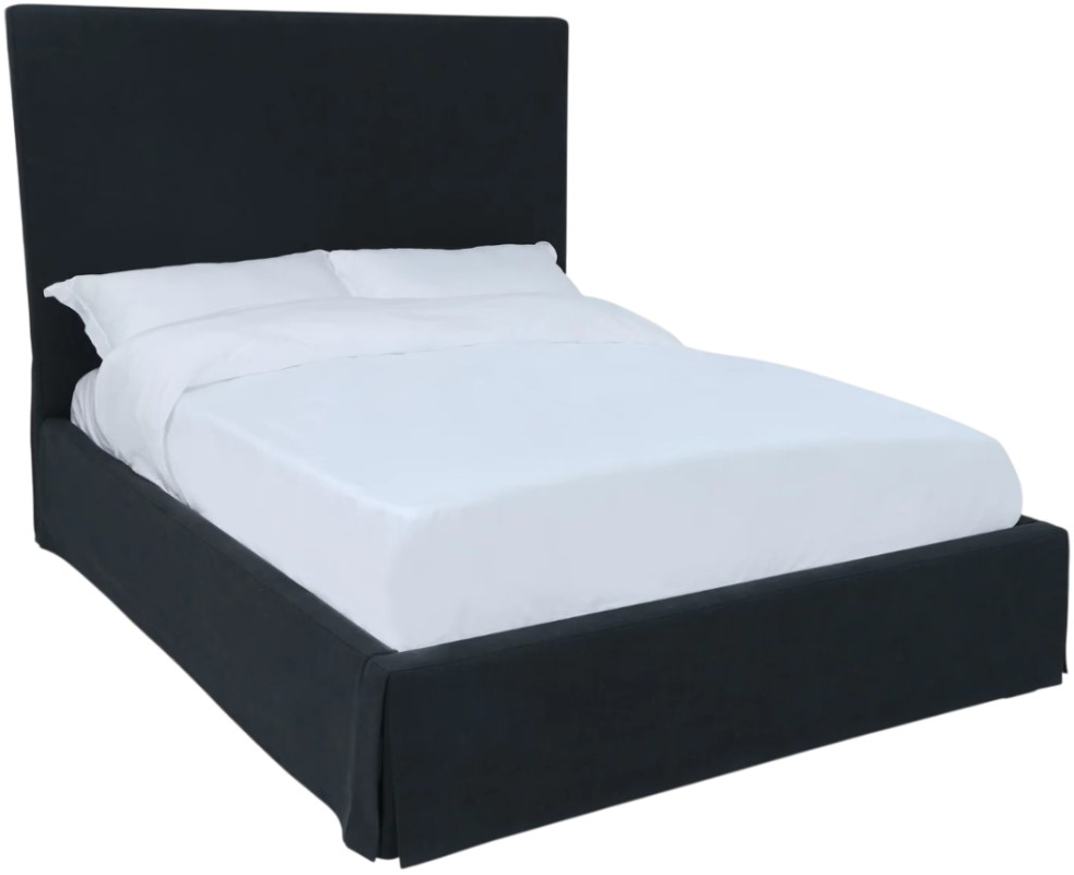 Designed with clean lines in an array of colors, our Juliette upholstered bed collection brings relaxed luxury to your bedroom. Made with solid wood framing, layered foam and soft linen-blend fabric, this group creates a no-maintenance slipcover look with skirted bases and inverted corner pleats. Available in panel, wingback, camelback and clipped corner configurations.Read More