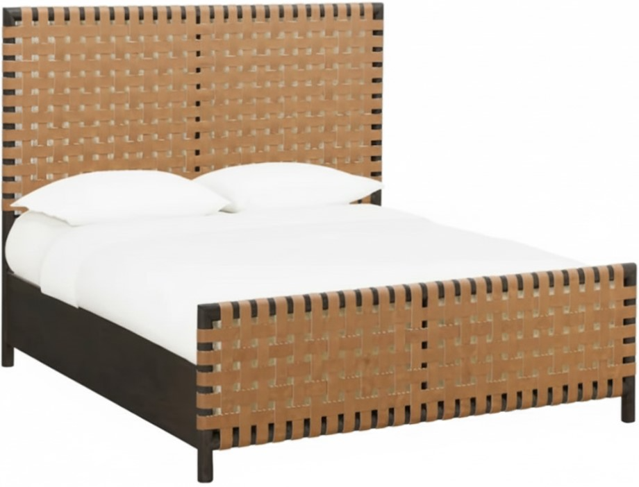 Distinctive head and footboard are hand woven using strips of soft, durable synthetic leather