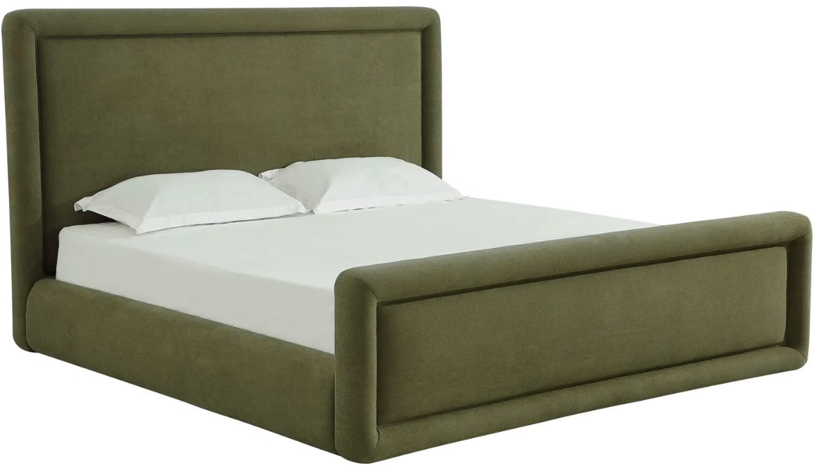 Upholstered headboard and frame in soothing Moss fabric
