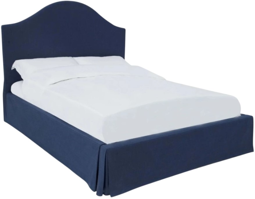 Designed with clean lines in an array of colors, our Juliette upholstered bed collection brings relaxed luxury to your bedroom. Made with solid wood framing, layered foam and soft linen-blend fabric, this group creates a no-maintenance slipcover look with skirted bases and inverted corner pleats. Available in panel, wingback, camelback and clipped corner configurations.Read More