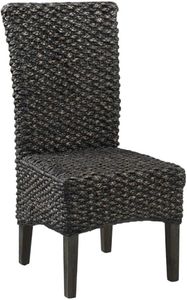 Frame is constructed from acacia solid wood; wicker is woven from water hyacinth and seat is reinforced with elastic webbing