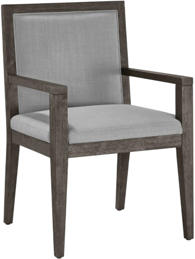 Complete your dining room design with this dining armchair from the Modesto Collection. Shown in gray fabric and features an upholstered back and seat and has a wooden frame and legs in French Roast finish. This chair will definitely add style to your dining room.Read More