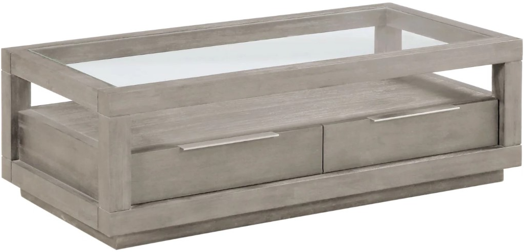 Coffee table includes two extra-large storage drawers