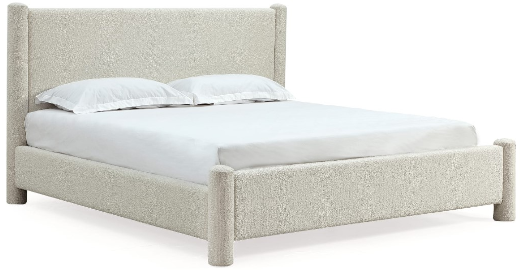 This short poster bed adds shape and texture to the bedroom with its round bed posts, tactile boucle fabric and mid-height footboard. The Cottage Cheese boucle cover is white to off-white in color and designed for performance, made from 100% polyester fiber and treated for easy care and cleaning.Read More