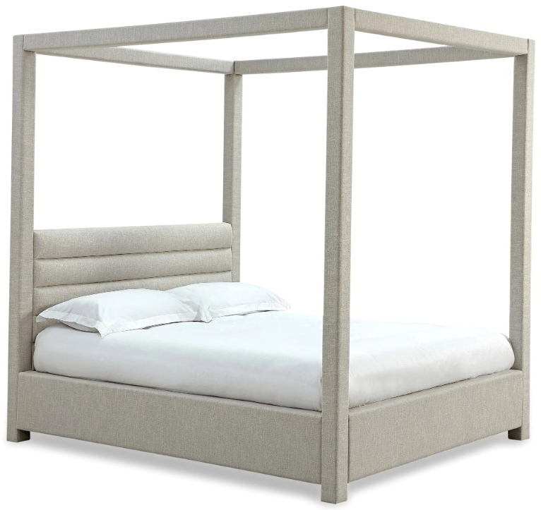 Upholstered from head to toe in a premium linen fabric, the Rockford bed features curvy horizontal channeling to create a plush headboard surface. The platform bed mattress support consists of metal center rails and support legs with wooden cross slats for use without a box spring.Read More