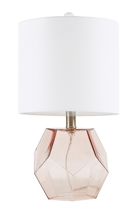 Elevate your home decor with the unique style of the 510 Design Bella Table Lamp. This table lamp features a pink glass base with a white drum shade that creates a beautiful and eye-catching contrast. A 60-inch clear cord provides plenty of length to fit this glass table lamp in any room of your home. With simple and clean design, this glass table lamp elevates your space with style and elegance. Come with a 2 year limited warranty. 1 Type-A light bulb is needed and NOT included. Spot clean only.Read More