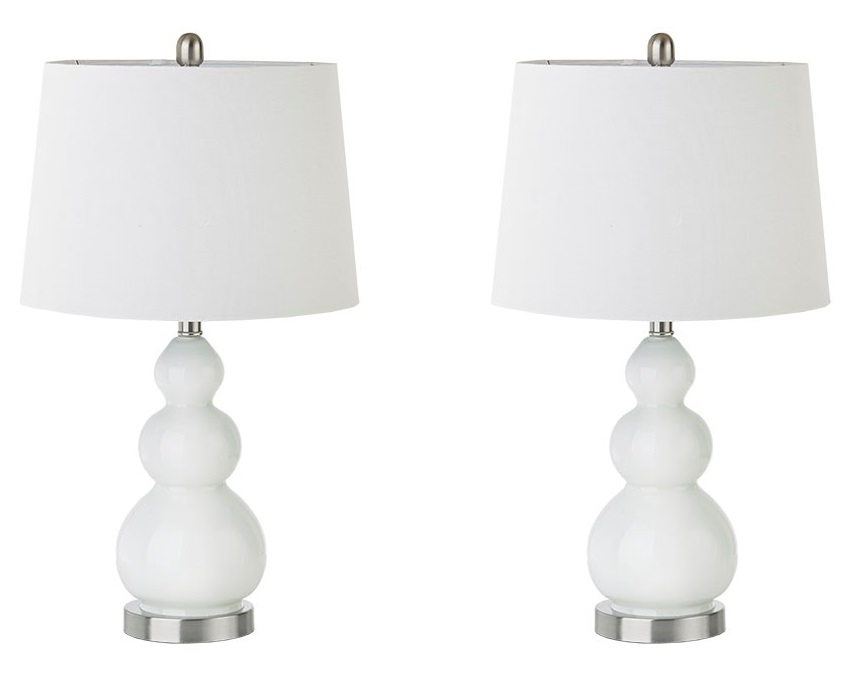 Enhance your space with the Covey Table Lamp. The beautiful white glass and silver metal base is complemented by white tapered drum shape shade that adds the right touch to the design. Place this table lamp in your living room or bedroom to complete your home decor. One Type A bulb is needed.Read More