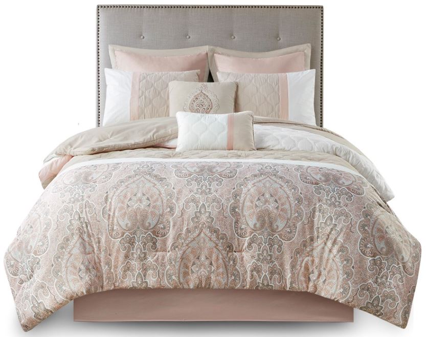 Update your bedroom with the refined elegance of 510 Design’s Shawnee 8 Piece Comforter Set. Showcasing a pieced design with quilting details, this ultra-soft microfiber comforter flaunts a printed damask motif in blush and taupe hues to create a luxurious look.Read More
