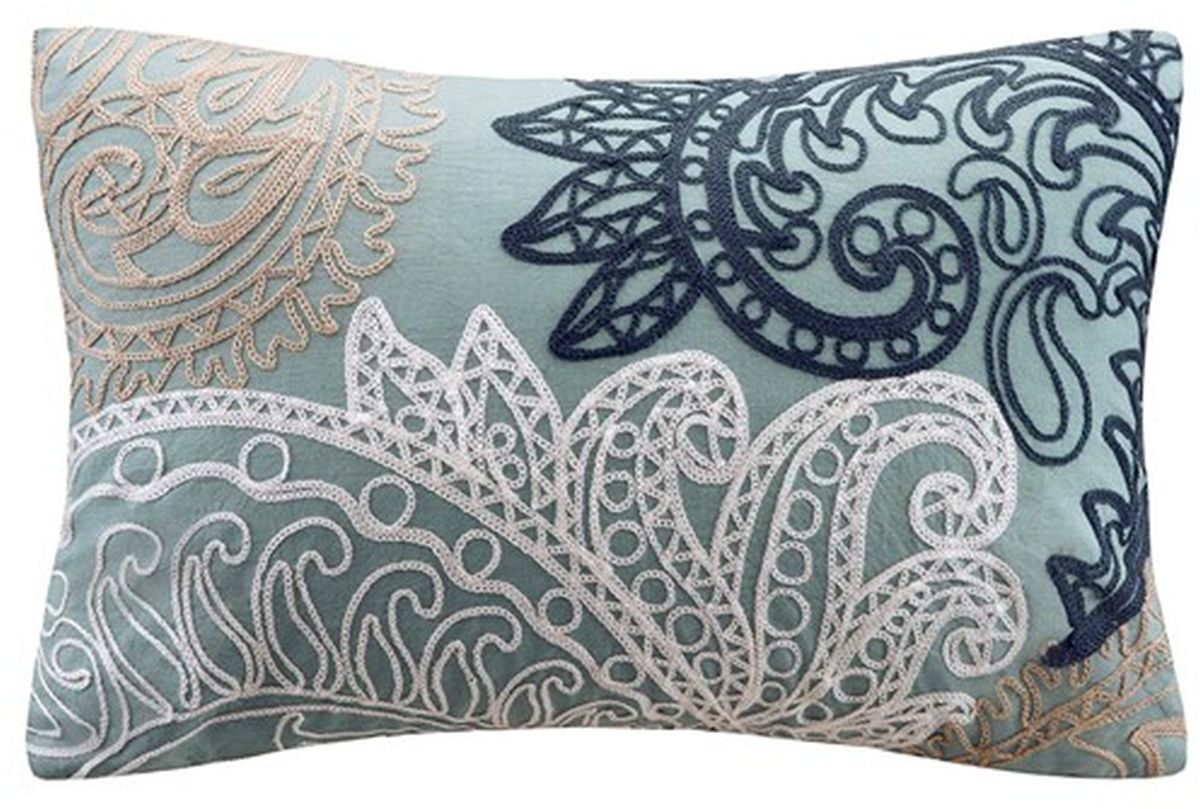 The INK+IVY Kiran oblong pillow can be used in all rooms in your home. Its ornamental chain stitch embroidery is thick providing a dramatic affect from this global design. This decorative pillow coordinates with the INK+IVY Bedding Collection.Read More