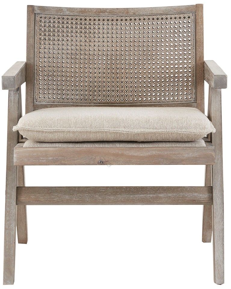Give your home a one-of-a-kind natural update with the INK+IVY Ventura Accent Chair. This accent chair features a rattan back and a solid hardwood frame in a grey aged oak finish to create an organic appeal. The upholstered attached seat cushion provides exceptional comfort, while also completing the raw look of the chair. With a simple and unique design, this accent chair offers a mid-century style with a rustic flair for your living room. Leg assembly is required.
