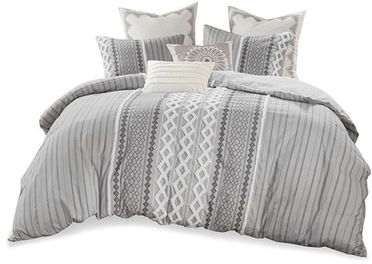 Bring a soft, mid-century look to you bedroom with the INK+IVY Imani Cotton Duvet Cover Mini Set. The grey cotton duvet cover features geometric prints with tufted chenille that adds dimension and charm, while the solid grey reverse complements the eye-catching patterns seen on top of the bed.Read More